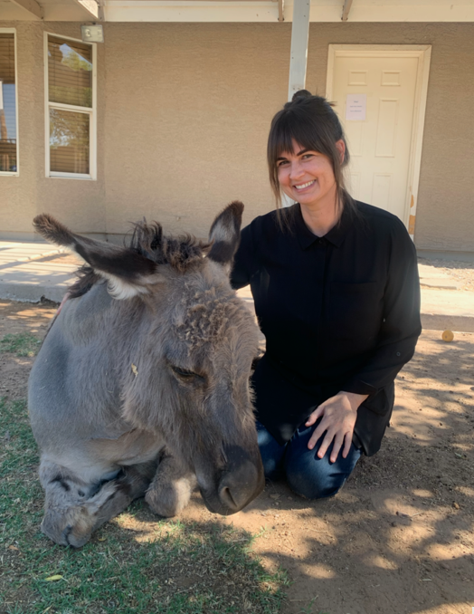 When not at the Ranch, Tiffany can be found volunteering at the local United Food Bank, enjoying the AZ weather outside, and spending time with her busy family. She loves animals and will occasionally bring her Sonoran tortoise (Flash) to visit the ranch and help teach clients regulation skills and animal education.